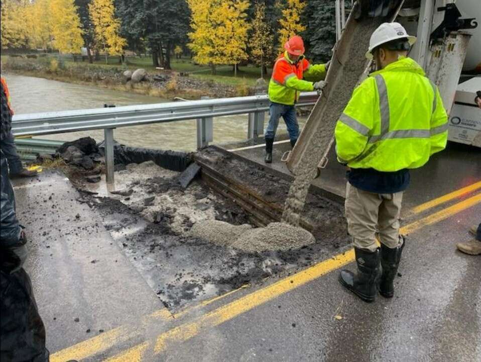 Repairs on the damaged section of the bridge began Monday morning, and crews hope it will set overnight to allow one-lane traffic to resume Tuesday.