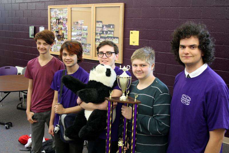 As veterans of Knowledge Bowl, they attended national competition two years ago. While visiting the National Zoo, McCloskey bought a giant stuffed panda and named him after his favorite author, Gabriel Garcia Marquez, and the black-and-white furball has been the team mascot ever since.