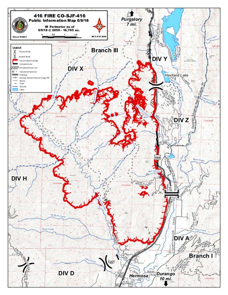 The Type I team managing the 416 fire will also assume command of the Burro Fire 10 miles west of the 416 Fire. That fire is burning in the San Juan National Forest about 23 miles northeast of Dolores. As of this morning, the Burro Fire is at 493 acres. The division will assume command of the fire at 6 a.m. Monday, said Shawn Bawden, a spokesman with the Type I team said.