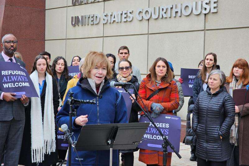 After the hearing, Democratic U.S. Sen. Tina Smith of Minnesota said at a news conference outside the courthouse that the government "failed to offer any coherent argument for their policy in either law or fact.” She wasn’t in court for the hearing, but said she'd been briefed about it.