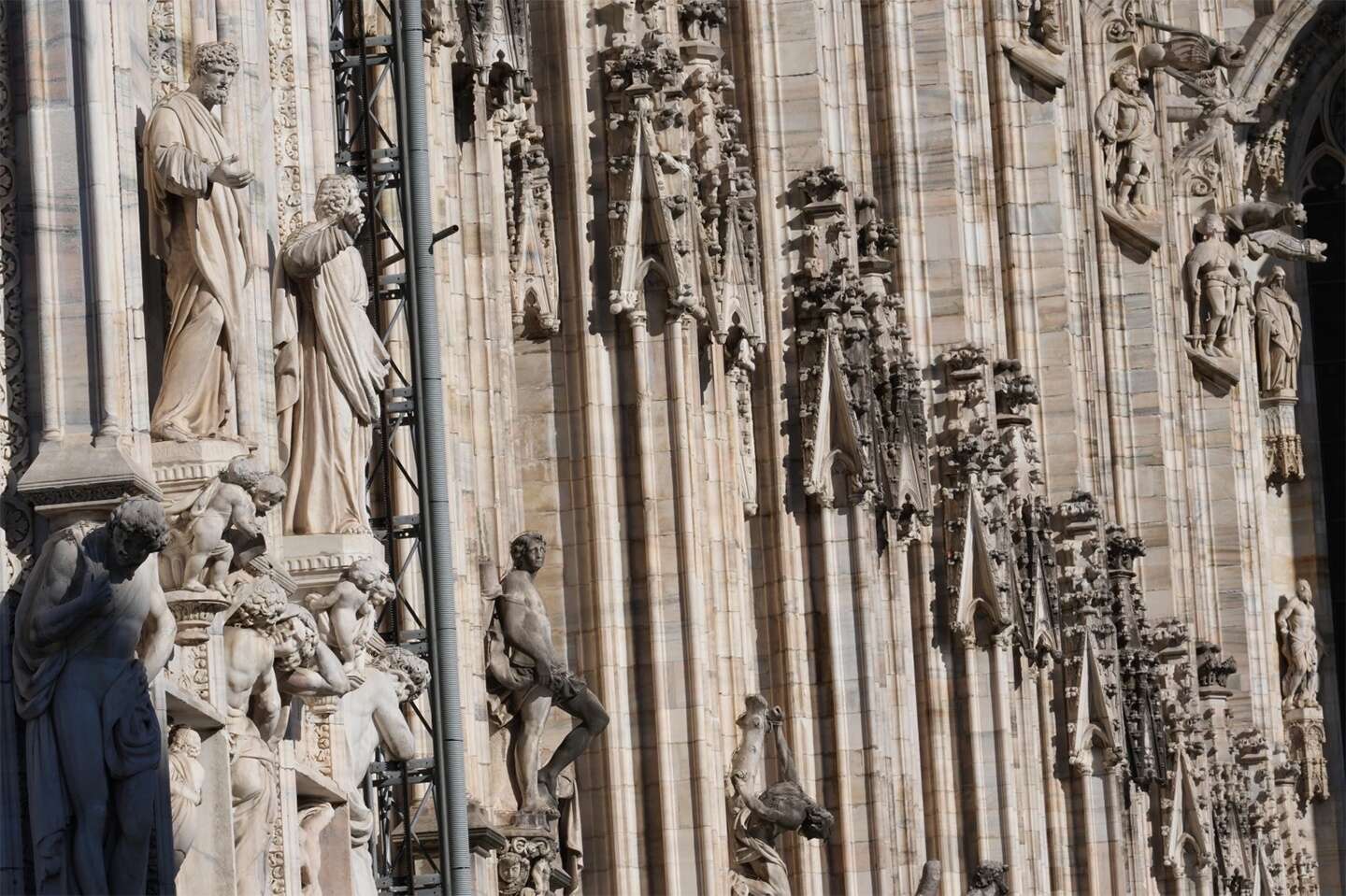 Because construction spanned centuries, the Duomo’s statues were carved by artists from different regions and periods, resulting in a monument that reads as a timeline of evolving artistic styles.