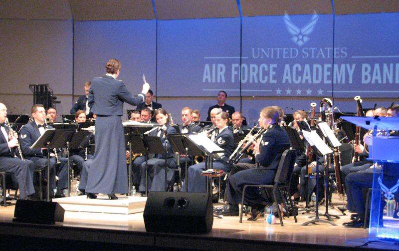 The Air Force has 10 bands stationed at various bases around the country, playing rock, country, jazz and band standards. The Air Force Academy Band was founded more than 60 years ago and is based today at Peterson Air Force Base. Simon joked that a bus full of Air Force recruits was behind the auditorium heading to San Antonio if anyone felt like joining up Saturday.