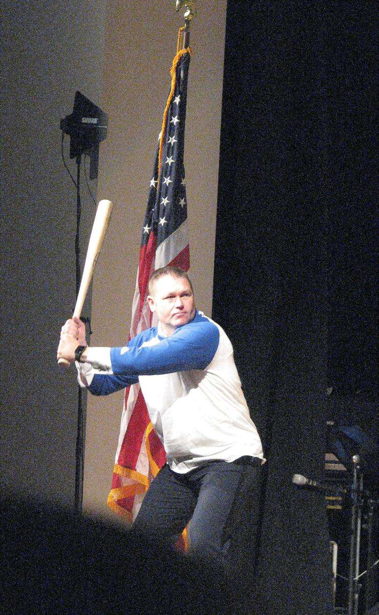 Six musicians from Bayfield High School joined the band for a John Philip Sousa work entitled "The National Game." In addition to being a march master, Sousa also was a baseball fan and wrote the piece in honor of the national pasttime. Wearing baseball shirts, two band members pitched and hit an imaginary ball during part of the performance, to the delight of the audience.