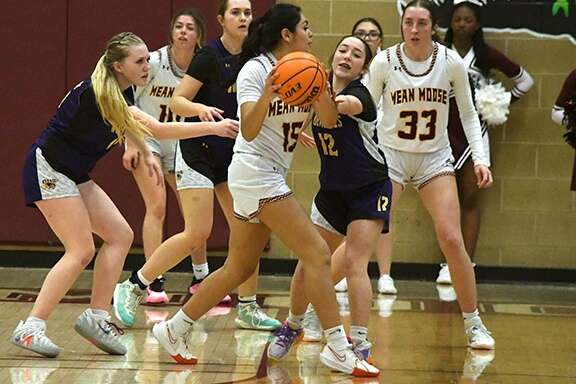 Senior Jaelin Garcia took a Knorr pass and swished a three inflating press-powered AHS’ pad to 17-0 with 2:47 left, and added two 3-pointers late as the 4A Mean Moose muscled their way into the second quarter up 23-0. Gabb’s first bucket ended 3A BHS’ 8:39 scoreless stretch.