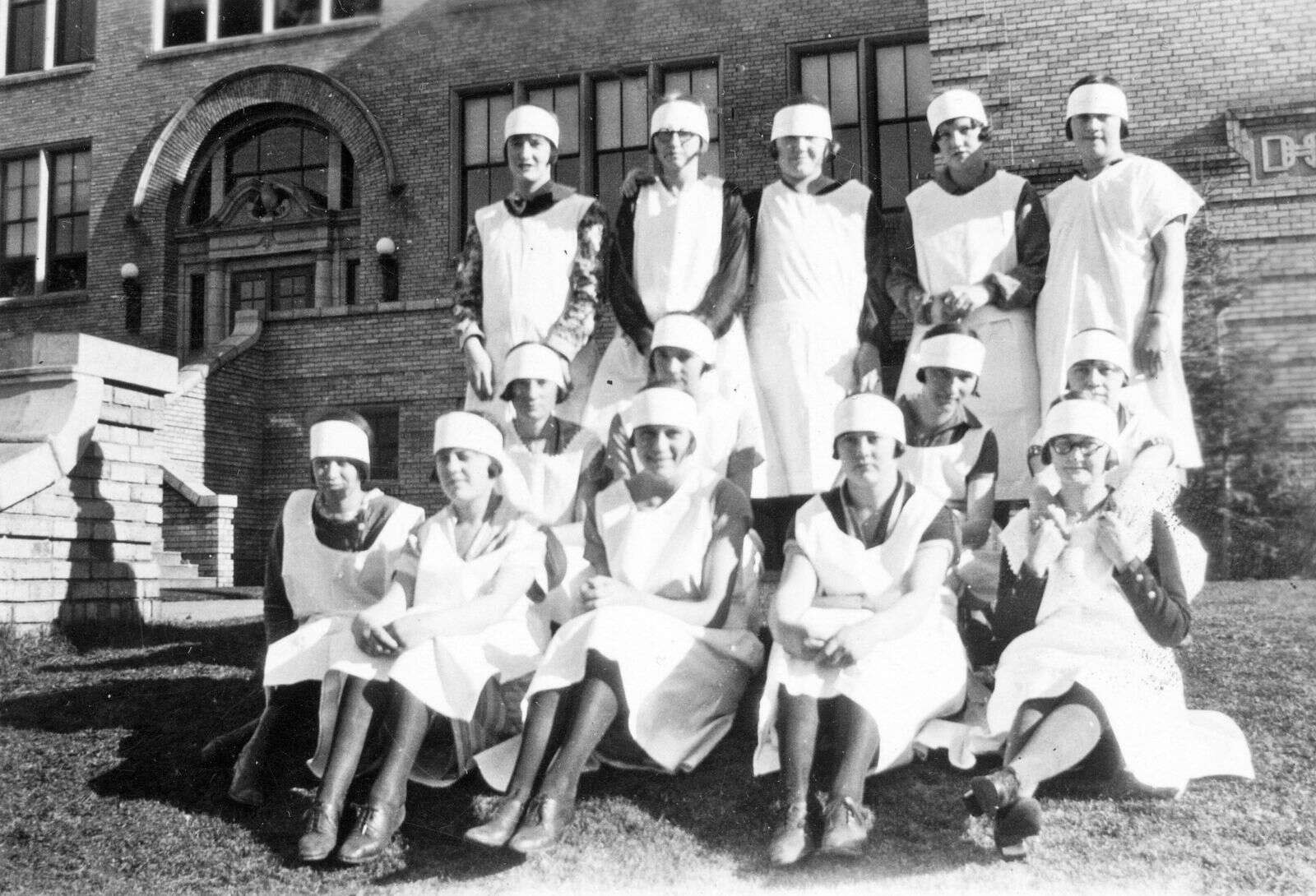 On St. Patrick’s Day in 1924, this group of high school women prepared a festive meal for the Durango School Board, the superintendent of schools, and the high school principal. Under the guidance of domestic science instructor Ms. Spencer, they crafted a menu featuring mostly green dishes, including green cherry garnish, potatoes, green peas, apple salad, green olives and mint sherbet. Pictured in front of Durango High School are Leona Snyder, Klea Evans, Verna Densmore, Emma Broyles, Isabella Campbell, Jessie Mason, Hattie Lewis, Elizabeth Davis and Louise Becker. – Ed Horvat for Animas Museum, edhorvat@animasmuseum (Catalog Number: 07.34.1 from the La Plata County Historical Society Photo Collections)