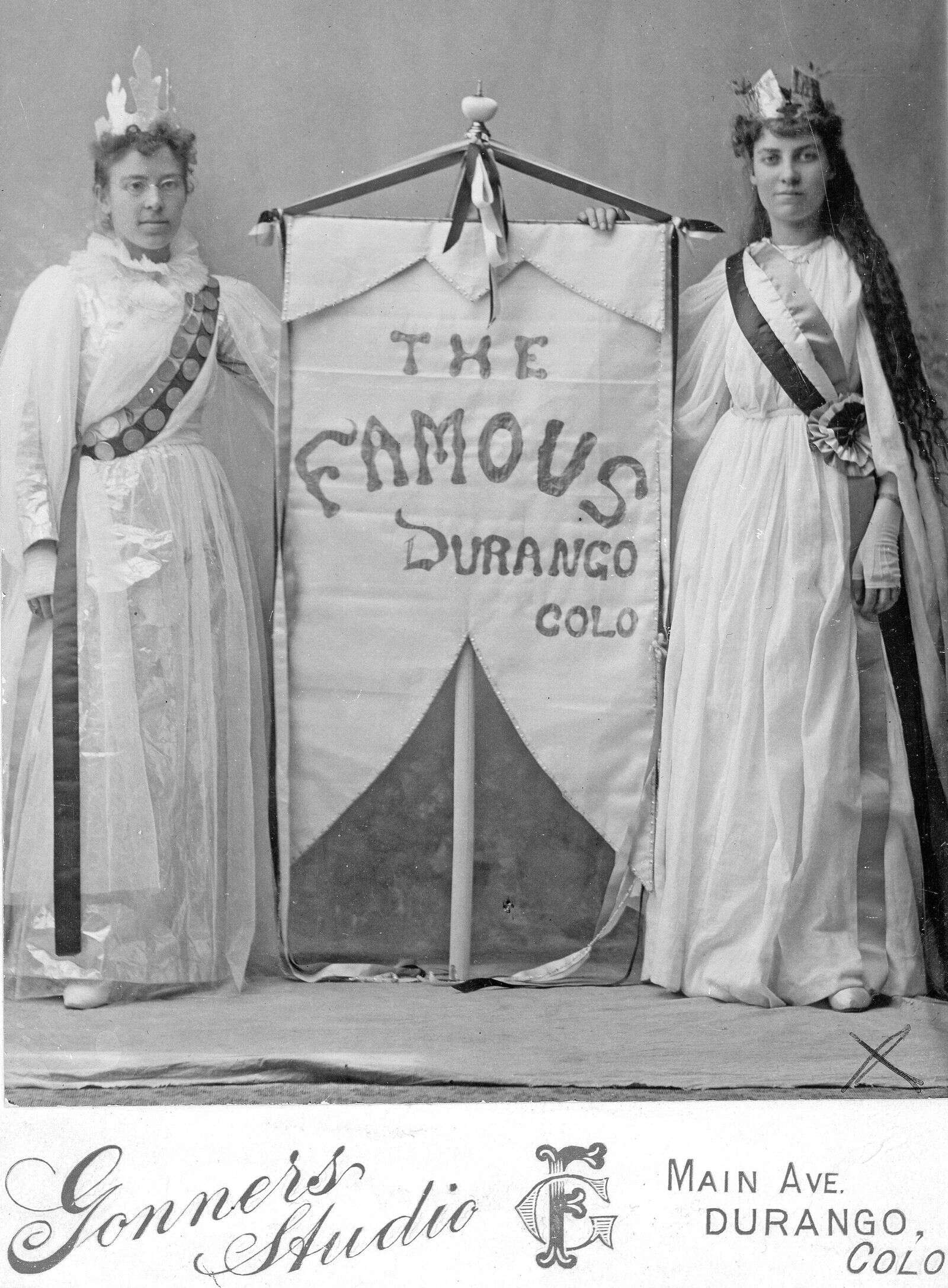 The Famous Stores Co. was a Durango clothing and dry goods store owned by B.L. Rachofsky. Opened in 1892, it operated until 1924. It was located in the 800 block of Main Avenue, where the Main Mall is today. The woman on the right in this Gonner advertising photo is Marie Burch. She married August Klahn at St. Columba Catholic Church in 1897. Klahn came to Durango as a young boy in 1880. His mother and stepfather, F.A. Schluter, started Schluter Floral, a Durango floral company that operated until 2006. – Ed Horvat for Animas Museum, edhorvat@animasmuseum (Catalog Number: 23.54.170 from the La Plata County Historical Society Photo Collections)