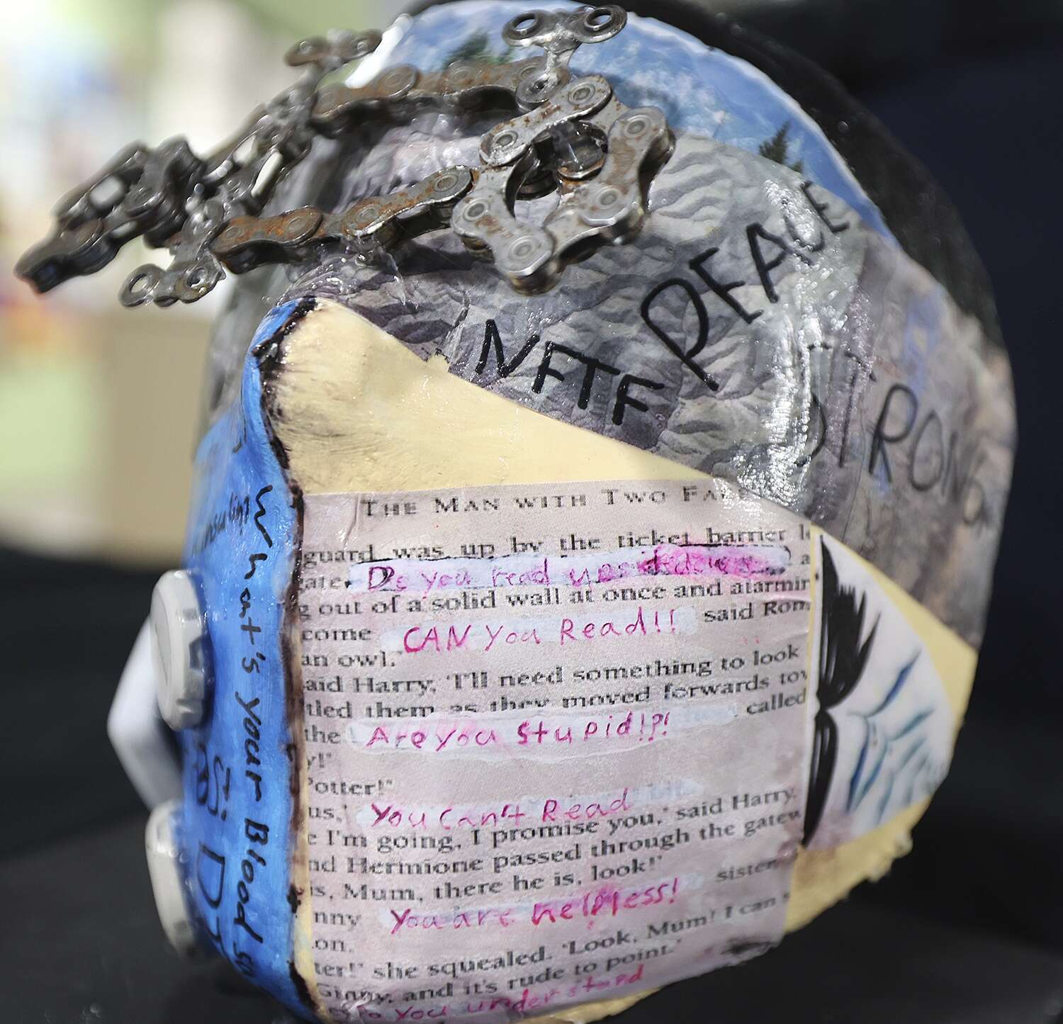He used old medical equipment to represent his diabetes. For his dyslexia, he included the Liberty School logo – the Durango elementary school he attended as a child – and phrases cut out of a book, some motivational and others reflecting harsh words he’s endured related to his condition.