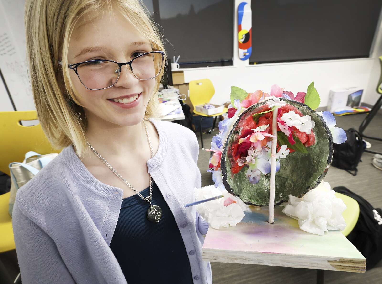 Howe called the mask project her favorite assignment at the school. Her project examined how social media and the male and female gaze affect female adolescence – a topic she said felt both relevant and personal.