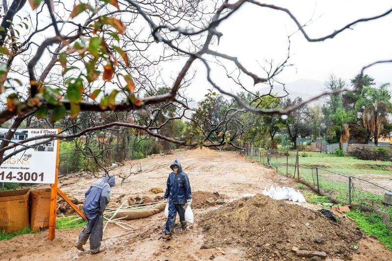 LOS ANGELES (AP) — An unusually strong storm system called an atmospheric river was dousing Southern California on Saturday, prompting flood warnings in areas of coastal Los Angeles County that recently were ravaged by wildfire.