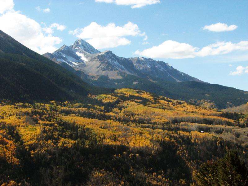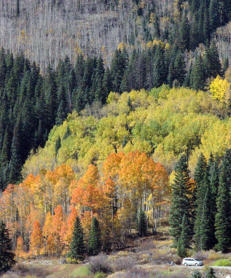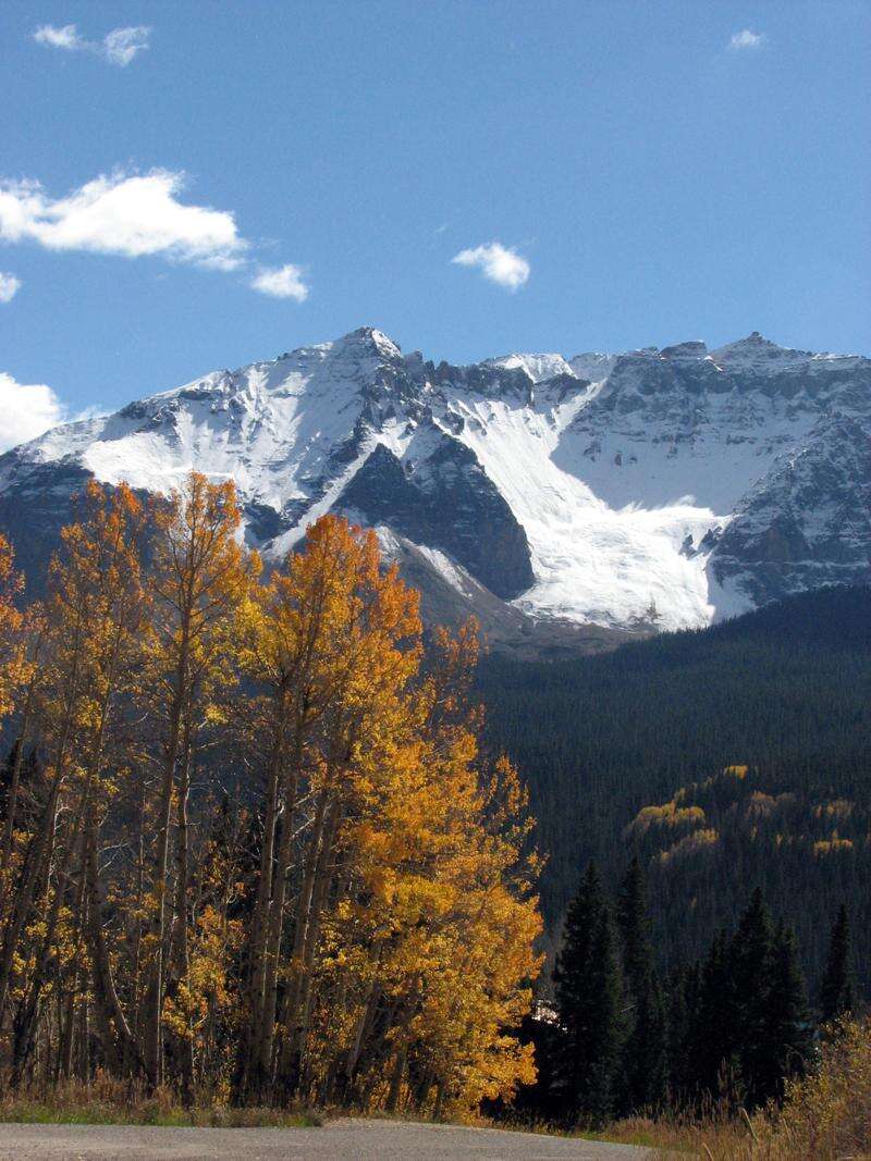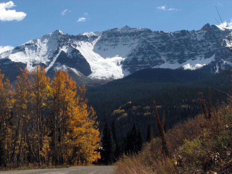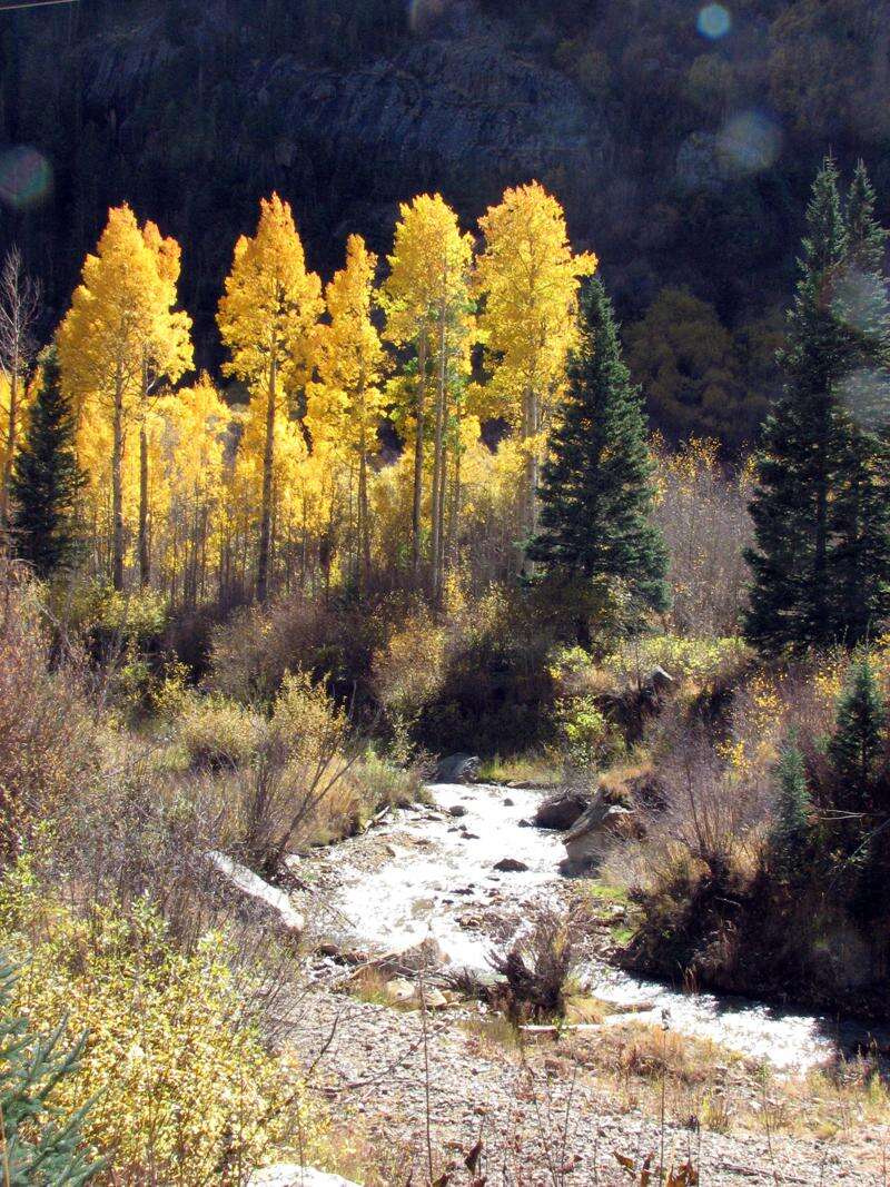 Scenic stops near Trout Lake are popular with autumn drivers. The skyway is a circle on Highway 550 to Highway 62 to Highway 145, going through Silverton, Ouray, Ridgway, Placerville, Rico, Dolores, Mancos and Durango, with lots of roads meandering off the highways.