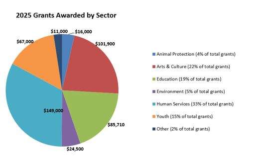 - Arts & Culture: $101,900, representing 22% of giving totals