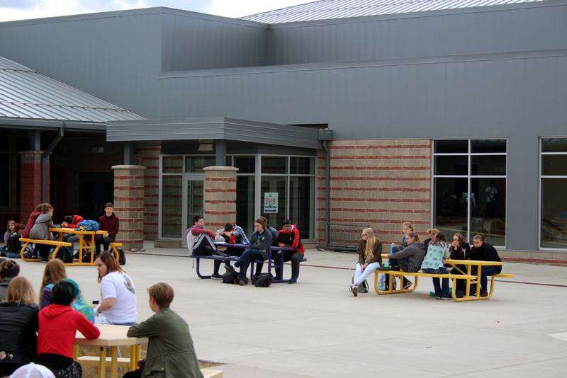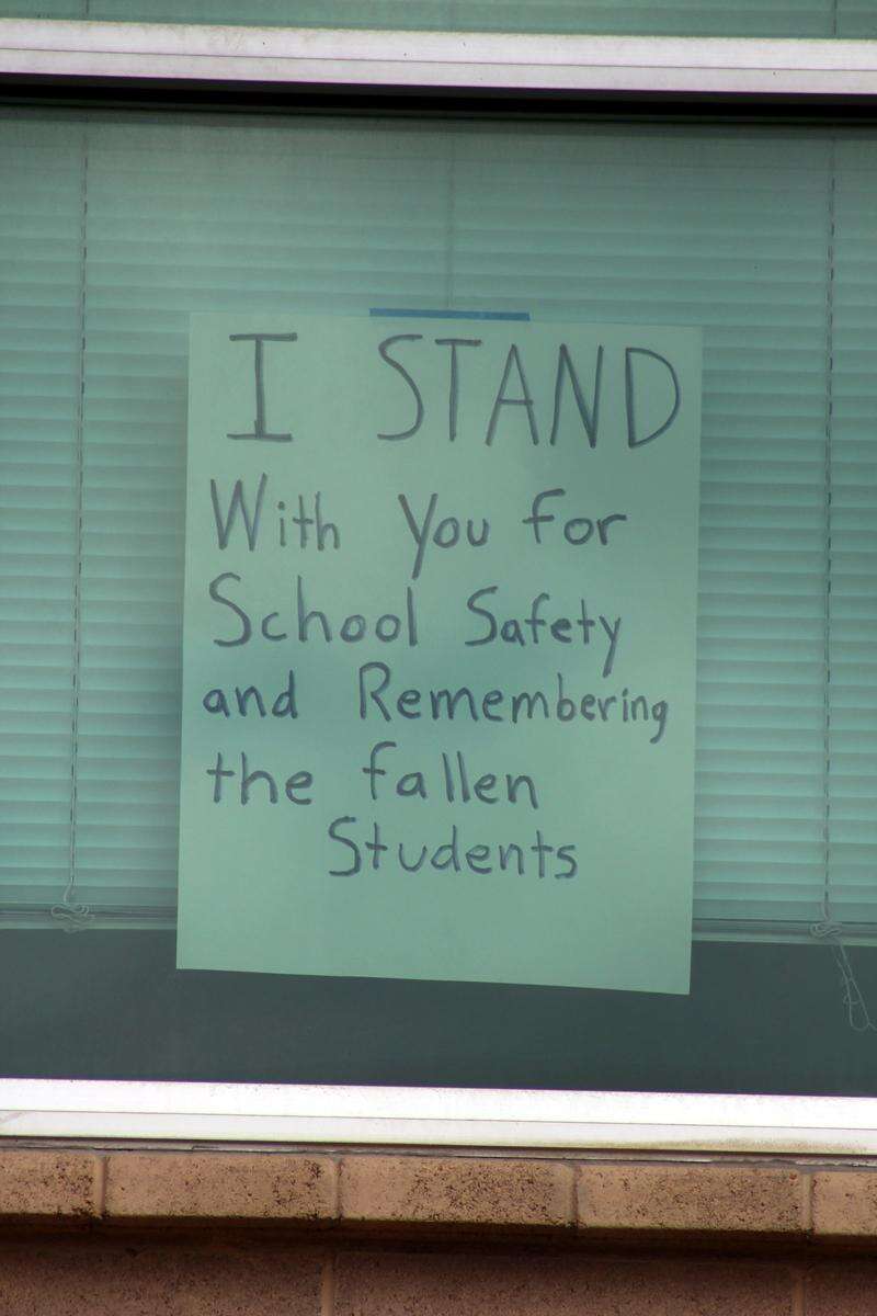 About 60 Bayfield High School students silently sat in front of the school for 17 minutes on Wednesday to protest school violence.