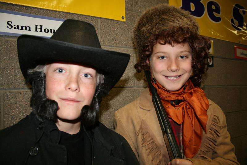 Portraying Texas historical figures, Logan Shepard was Sam Houston, and Marshall Starkebaum played Davy Crockett. Both died at the Alamo.