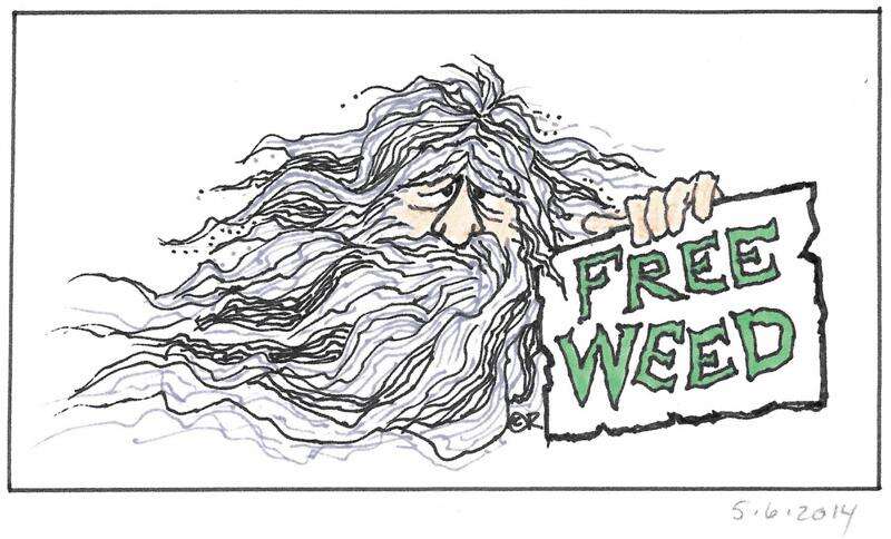 May 6 – 4:41 p.m. A man with a long, gray beard was holding a cardboard sign in the 600 block of Main Avenue that read “Free Weed.”