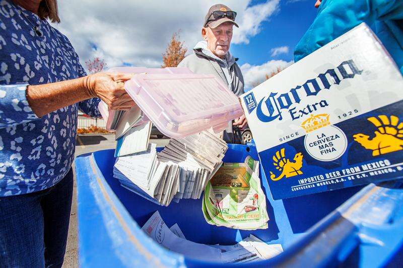 Documents must be out of folders with binder clips removed. Staples and paper clips may remain. A $5 donation is suggested for the regular limit of two copy paper-sized boxes. Additional boxes will be charged $5 per box.