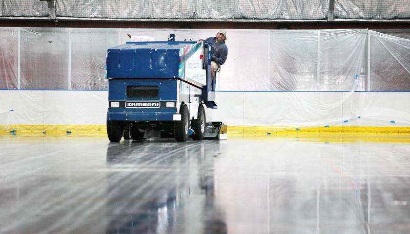 To many the signs of the change of seasons is not found in tree leafs, but rather when ice making begins at Chapman Hill. Recreation supervisor Matt Morrissey operates the Zamboni on the skate surface Monday to begin ice-making operations.