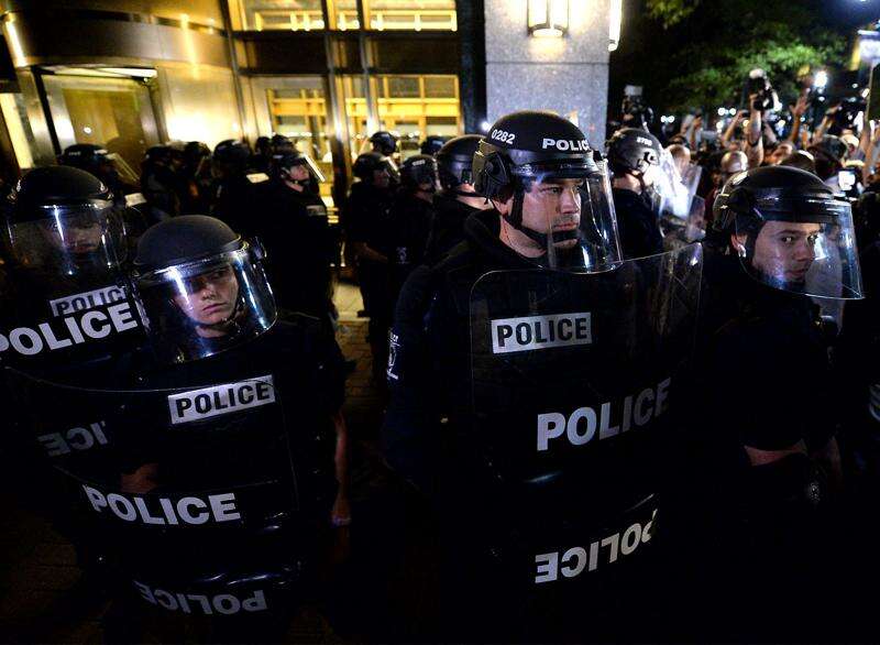But Thursday’s protests in Charlotte lacked the violence and property damage of previous nights, and the curfew encouraged a stopping point. Local officers’ ranks were augmented by Guard members carrying rifles and guarding office buildings against the threat of property damage.