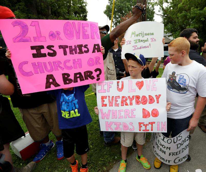 Participants in the inaugural service of the First Church of Cannabis, formed as a test of Indiana’s new religious objections law, had planned to celebrate by smoking marijuana. But church founder Bill Levin decided to keep pot out of the first service to ensure that he can test that law in civil court and not on criminal grounds.