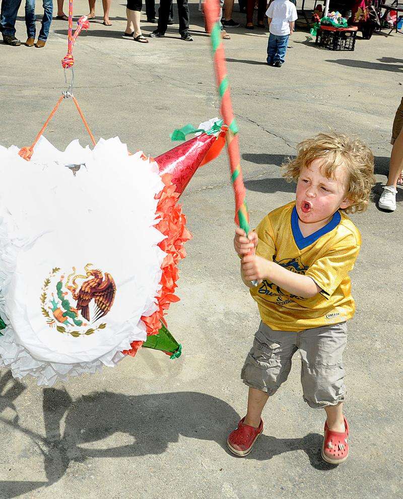 Four-year-old Boedy Imming, son of Dan and Christine Imming, was one of numerous kids taking a swing at the piñata Saturday afternoon during Gazpacho’s annual Cinco de Mayo Fiesta.