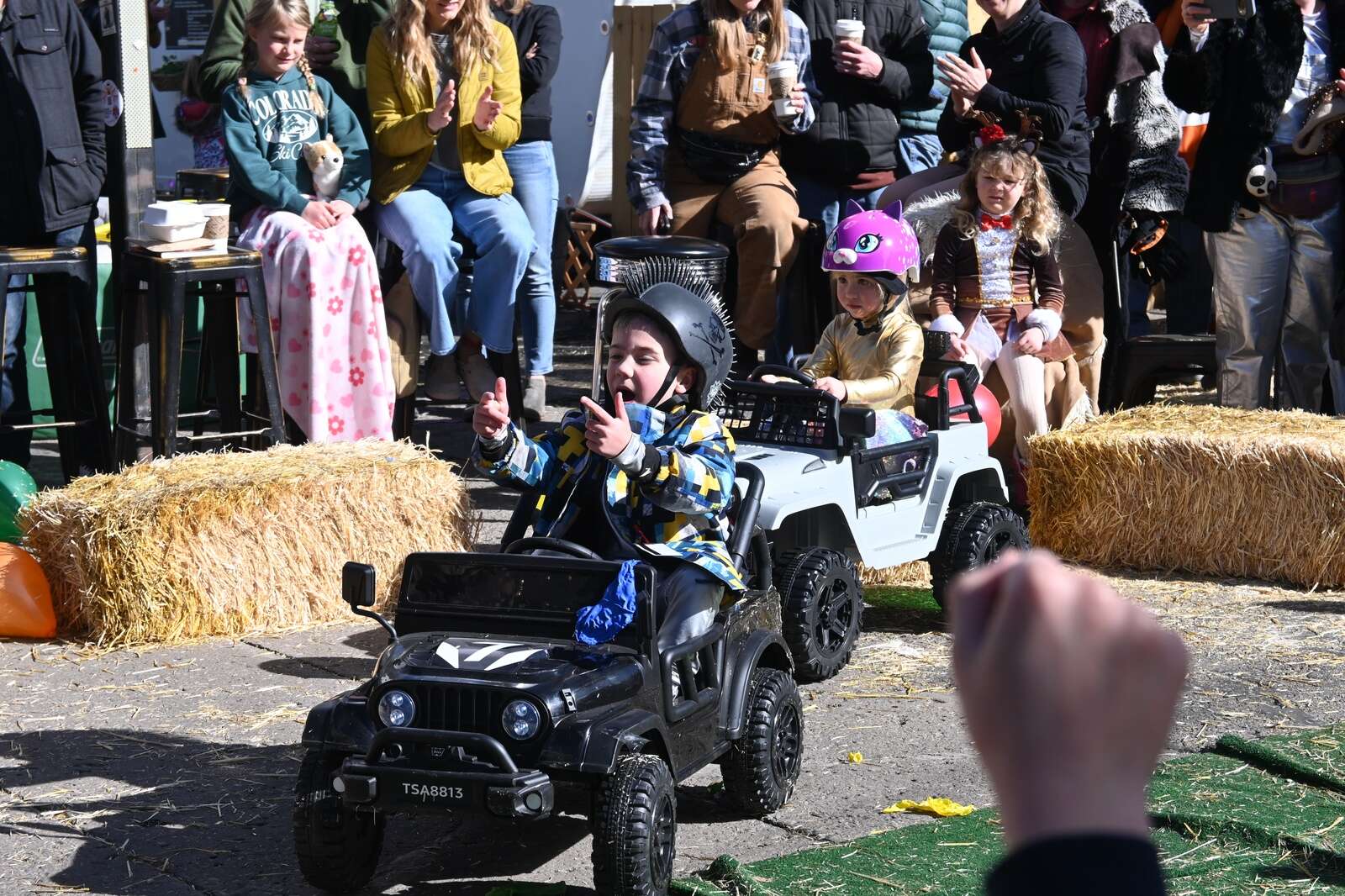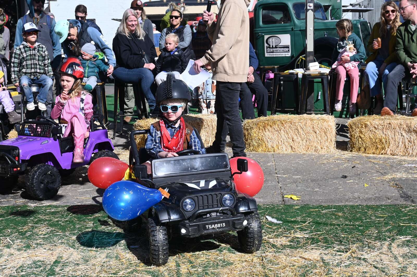 “I flipped over and popped a wheelie, and then I popped one balloon, and then another, and then one of Amara’s!” 6-year-old derby driver Wylin Willis said after leaving the hay-bale-enclosed track. Amara was one of Wylin’s competitors in his round of the derby.