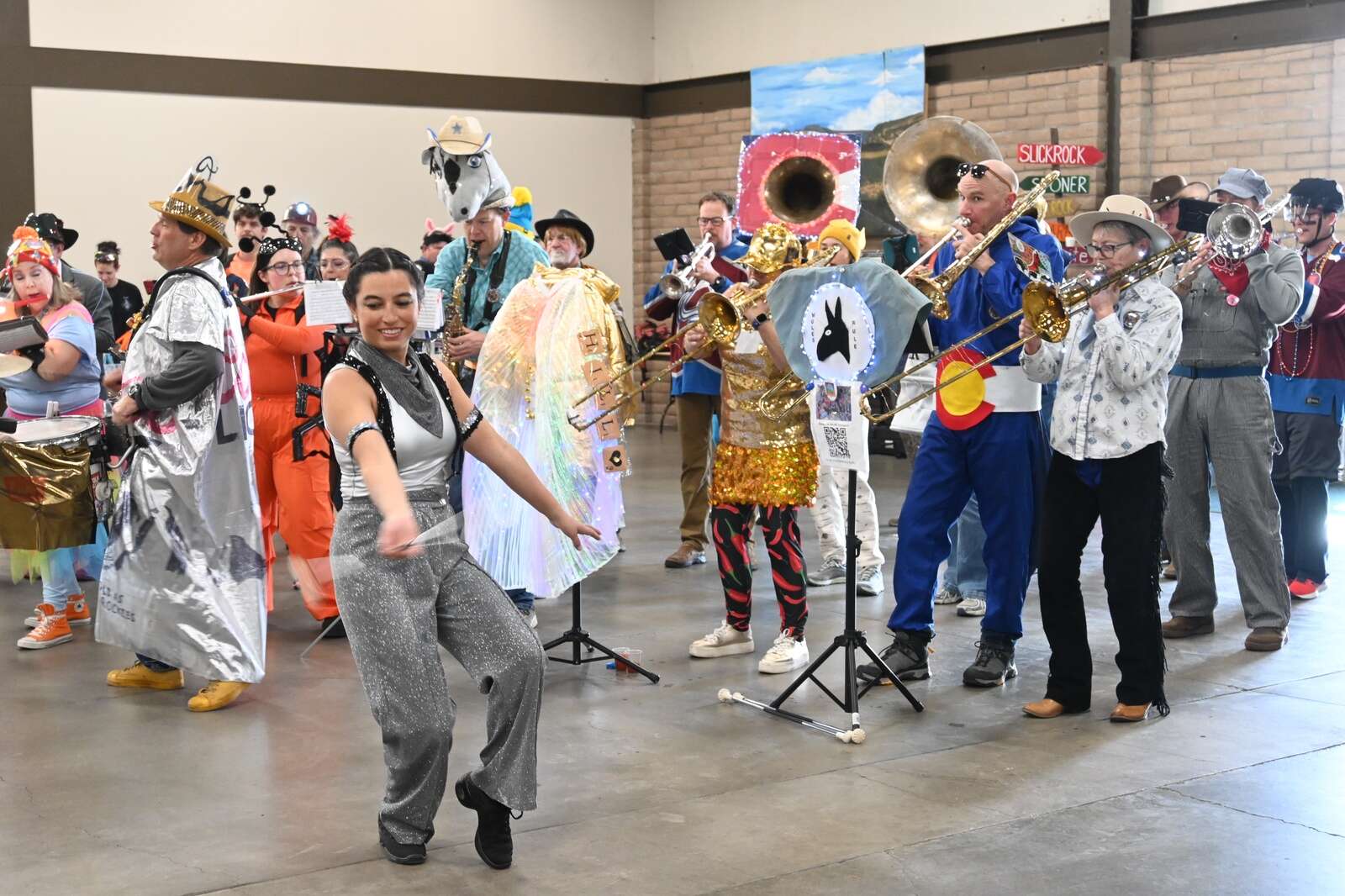 The Hill Stompers Band perform at Saturday’s Snowdown chili cookoff at the La Plata County Fairgrounds. (Elizabeth Pond/Durango Herald)