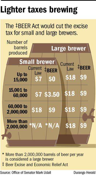 Udall’s bill cuts the excise for both small and large brewers. According to the current tax code, small brewers include those that make fewer than 2 million barrels of beer per year.