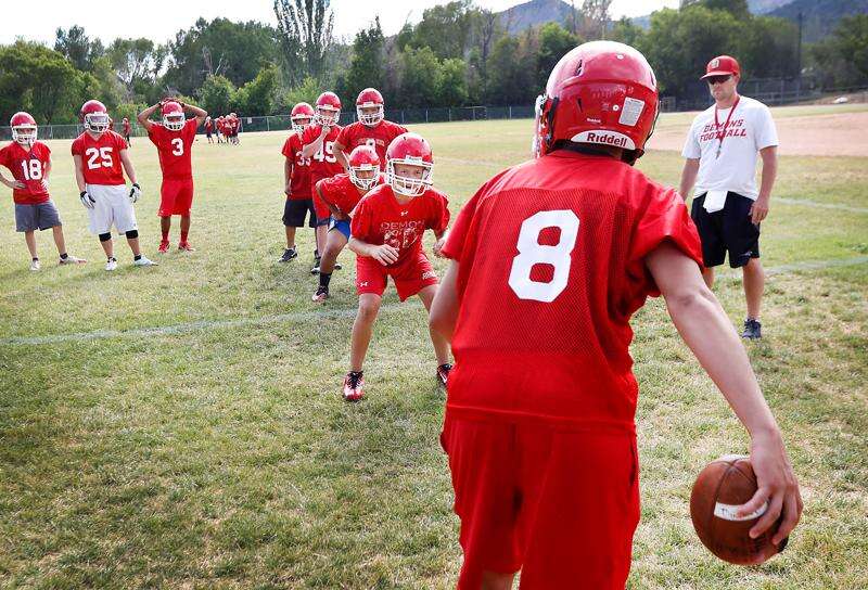 Durango High School assistant football coach Ryan Woolverton saw the Durango Demons open “spring” football practice Monday. The non-contact drills will be held through July 30. The Demons will host a scrimmage Saturday morning that will be open to the public. After the scrimmage, the team will host a benefit barbecue that will cost $10 per plate. The barbecue is scheduled to start about 10:30 a.m. Regular practices for the Demons begin Aug. 11. The team’s first game is Aug. 29 at home against Beckman High School from Irvine, California. The Demons are coming off a season in which they finished 8-3 and qualified for the playoffs, losing 36-26 to Denver South in the first round. The 2014 season will be head coach David Vogt’s second at the helm.