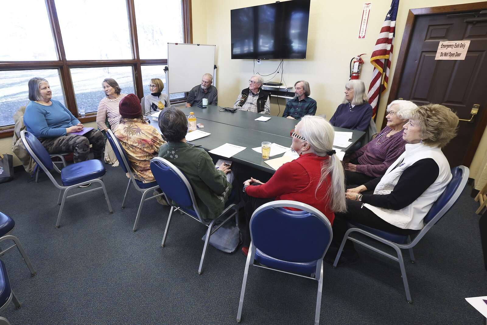 Group members at a Dec. 17 meeting laughed with one participant who shared anecdotes of uplifting little moments between him and his wife, who has dementia.