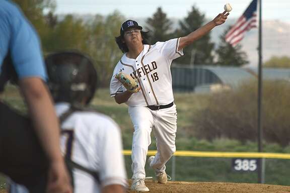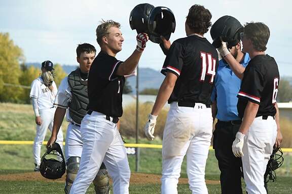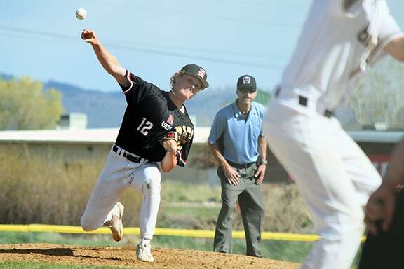 Facing Rey again with no outs in the guests’ fourth, Feeney lifted a pitch far enough down the left-field line to not only clear the 320-foot sign, but score sophomore designated hitter Cole Clark and senior second baseman Ollie Peterson ahead of himself and thus increase DHS’ lead to 16-3 en route to the 18-3 win – reduced to five innings after Bayfield junior Cameron Queen grounded to senior third baseman Austin Romero, who started a perfect 5-4-3 double play collecting BHS senior Tavian Box.