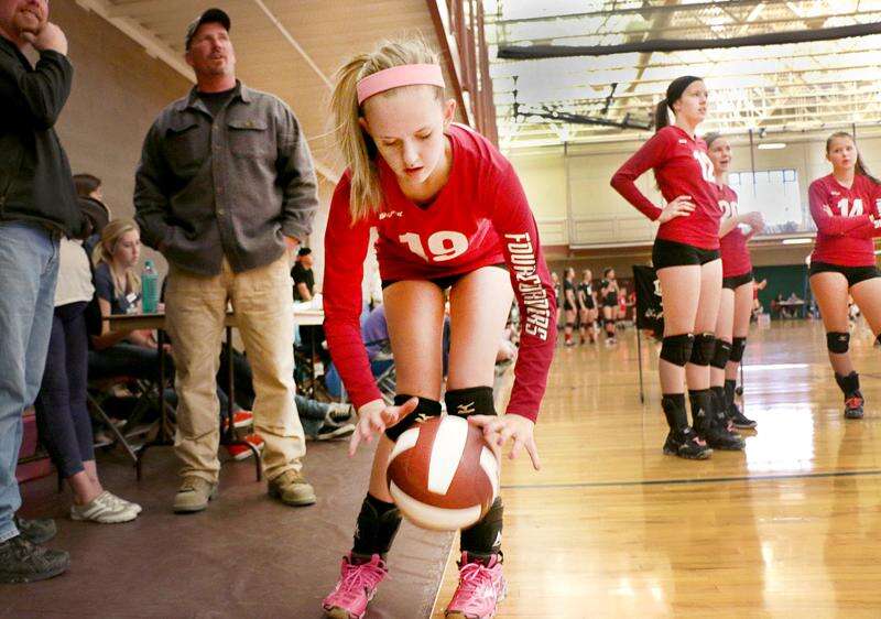 Brianna Brown, team member of the Four Corners Volleyball Club, goes through her pre-serve ritual on Saturday afternoon during a match at the annual Diggin’ It youth volleyball tournament at Fort Lewis College’s Student Life Center. The USAV tournament, hosted by the Four Corners Volleyball Club, took place Saturday and Sunday in both Durango and Ignacio. Various locations in town included Fort Lewis College, Durango High School, Escalante Middle School and Miller Middle School.