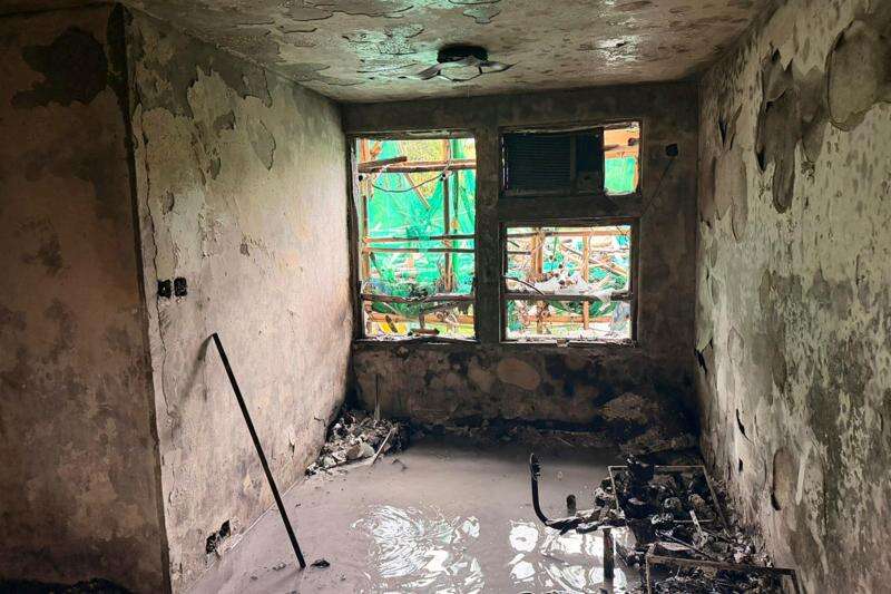 In this photo released by Hong Kong Police Public Relations Branch, the view of a burnt out apartment is seen in the aftermath of a deadly Wednesday fire at Wang Fuk Court, a residential estate in the Tai Po district of Hong Kong's New Territorie Sunday, Nov. 30, 2025. (Hong Kong Police Public Relations Branch via AP)