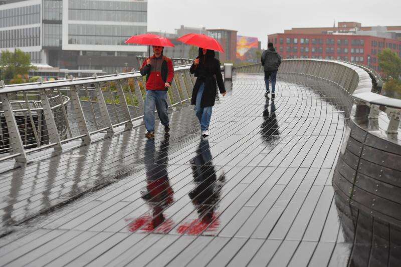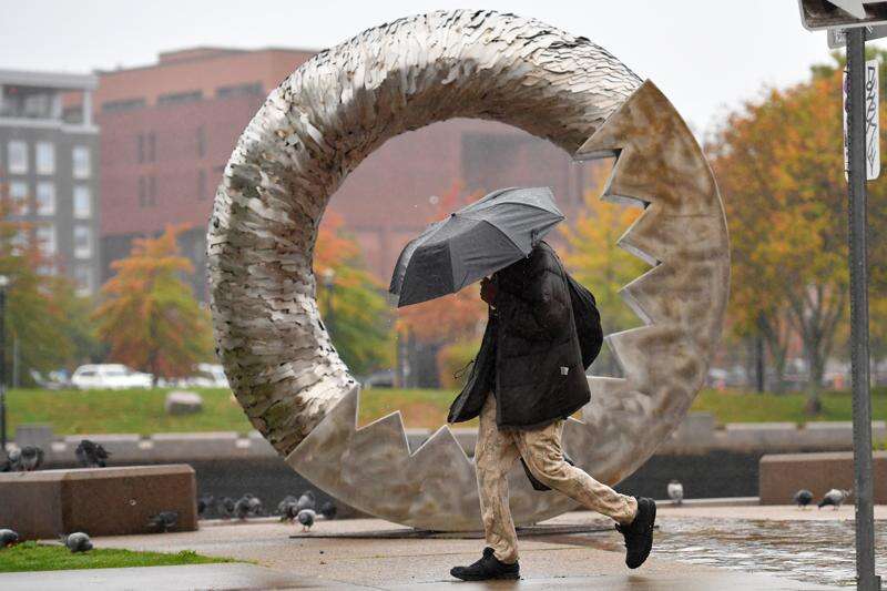 The rain and winds that started late Saturday were expected to continue throughout the day before tapering off late Monday or early Tuesday. Forecasters said more than 2 inches (5 centimeters) of rain could fall in some spots. The greatest threat for major flooding was expected to be in Long Island and southern New Jersey.