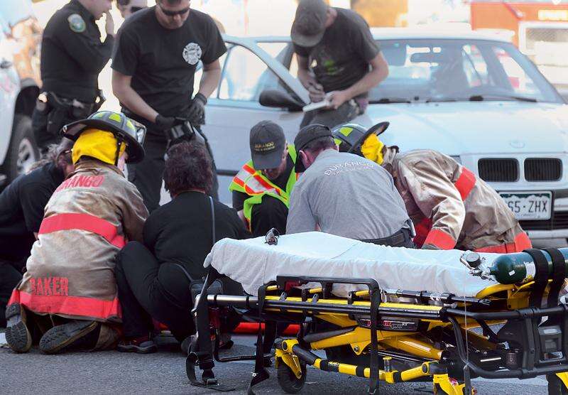 A driver was cited for careless driving, and two people were sent to Mercy Regional Medical Center with non-life-threatening injuries after a car collided with pedestrians at the intersection of Main Avenue and College Drive on Saturday afternoon, said officer David Smith of Durango Police Department. Smith said the driver was attempting to turn south onto Main Avenue from East College Drive when he struck the pedestrians in the crosswalk. Smith said he had not yet determined if the walk signal was on at the time of the accident.