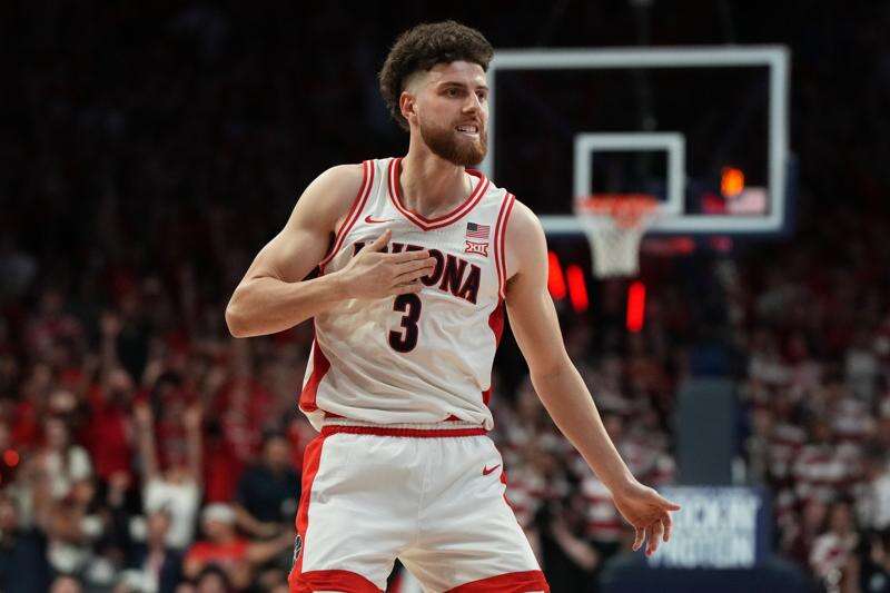 No. 2 Arizona received four first-place votes after clinching a share of the Big 12 regular-season title with Saturday's 84-61 win over No. 14 Kansas. Michigan, UConn and Florida rounded out the top five.