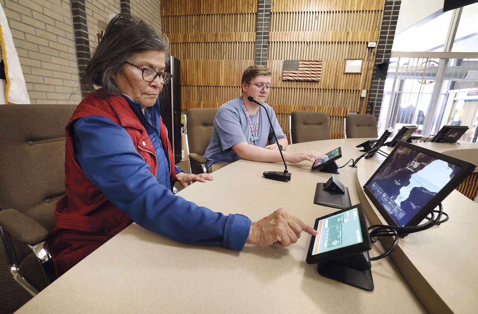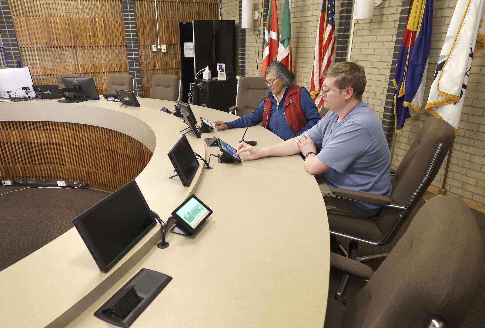 The controllers centralize information in front of councilors. In addition to showing presentation slides, the screens keep track of who has their hand raised, she said.