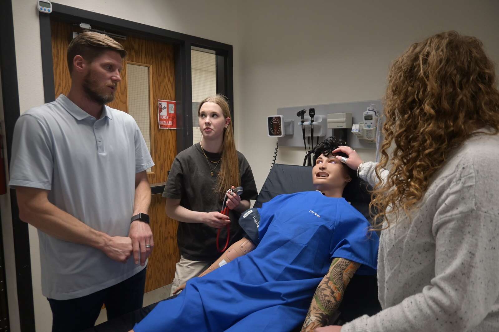 “You could reposition him or listen to his lungs,” another student, Sienna Rogers, said in response to the patient’s breathing problems.