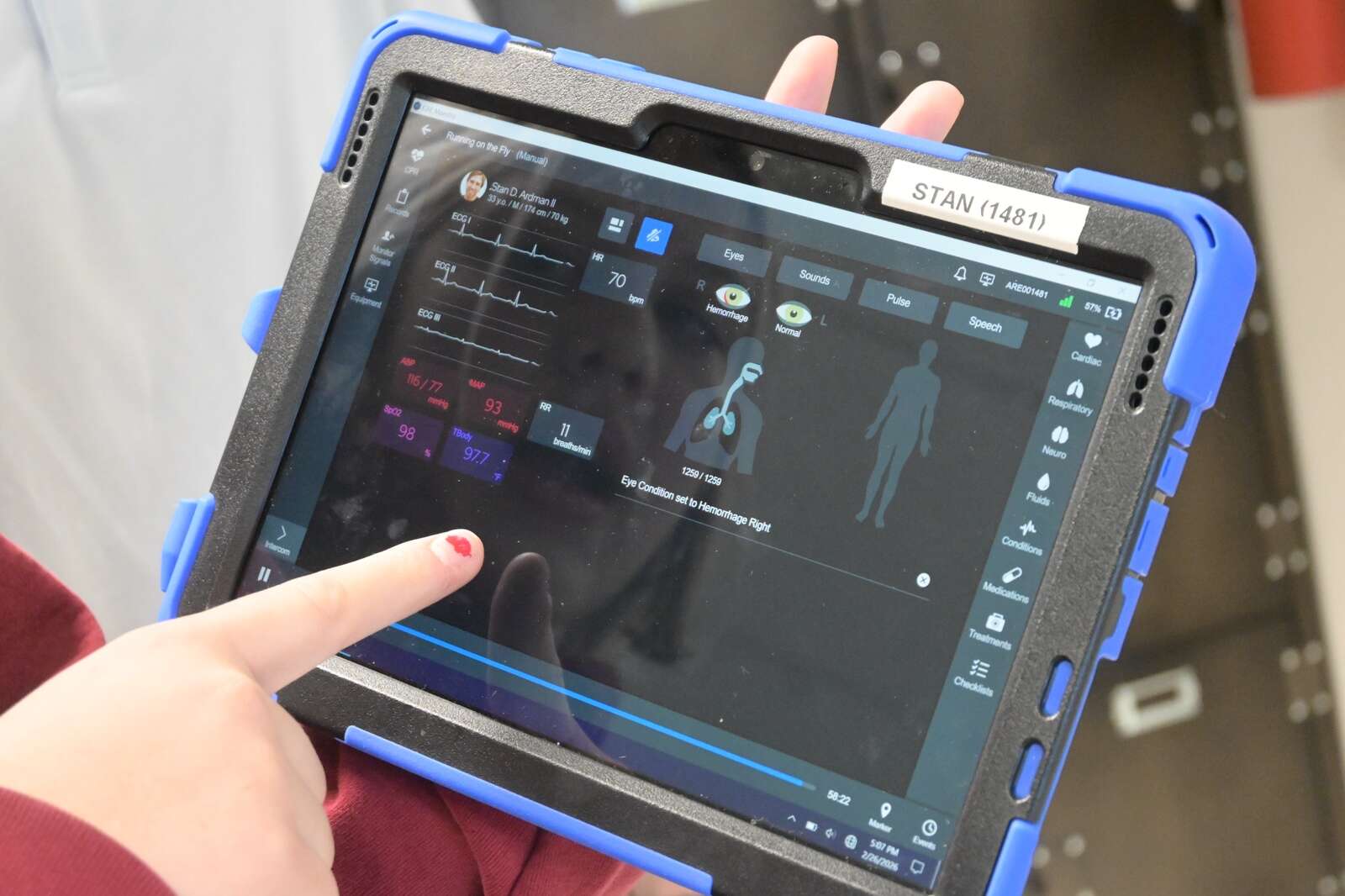 Celia was able to choose Stan’s responses to Rye’s questions and cause him to experience a range of conditions through the iPad. The speaker in Stan can also be connected to a headset that other students can use to speak for him when more advanced responses are needed, Montgomery said.
