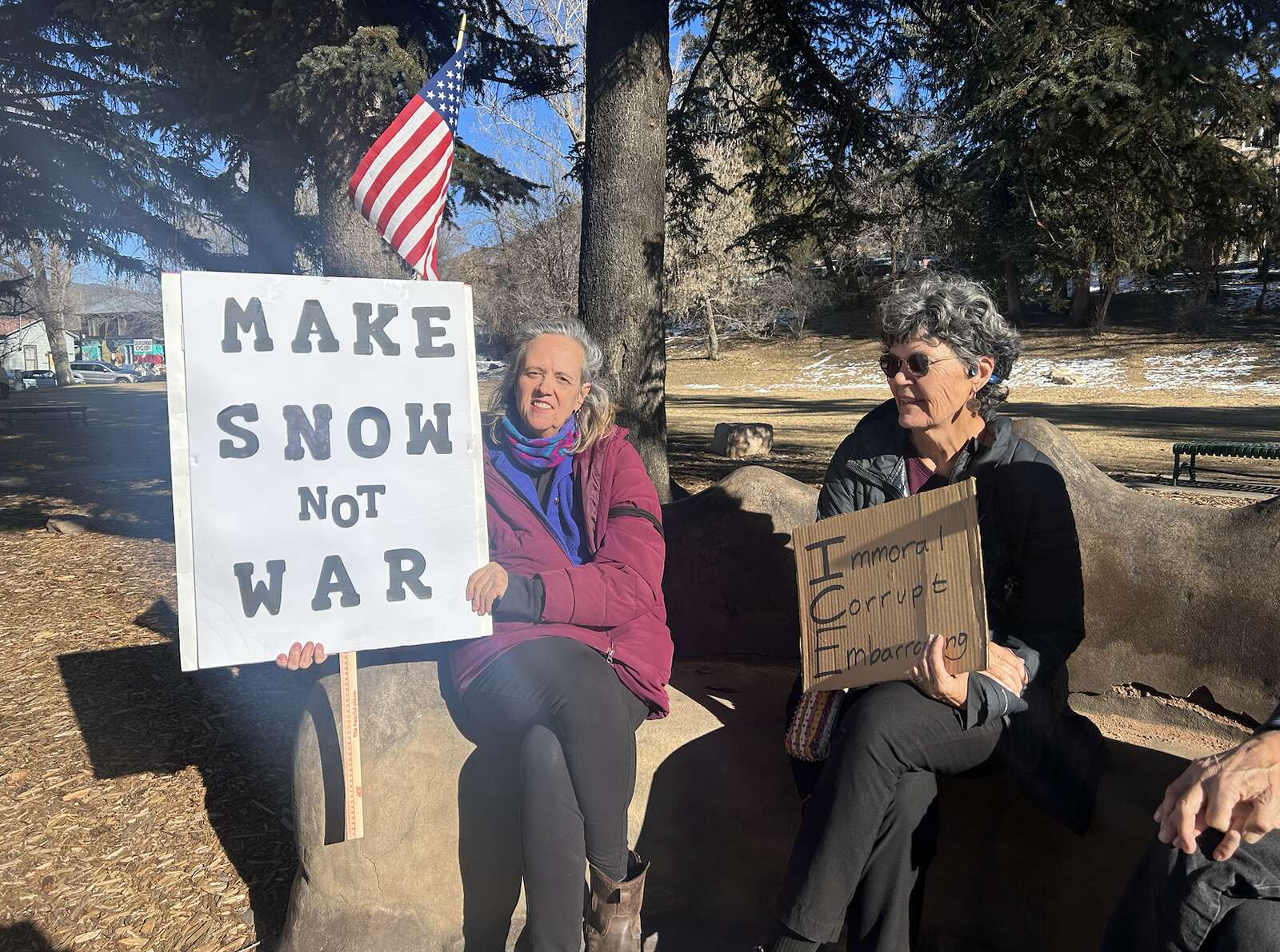 Durango resident Barb Day was one of the community members who joined the protest in support of the students. She brought along a repurposed sign she used in 1968 to protest against the Vietnam War.