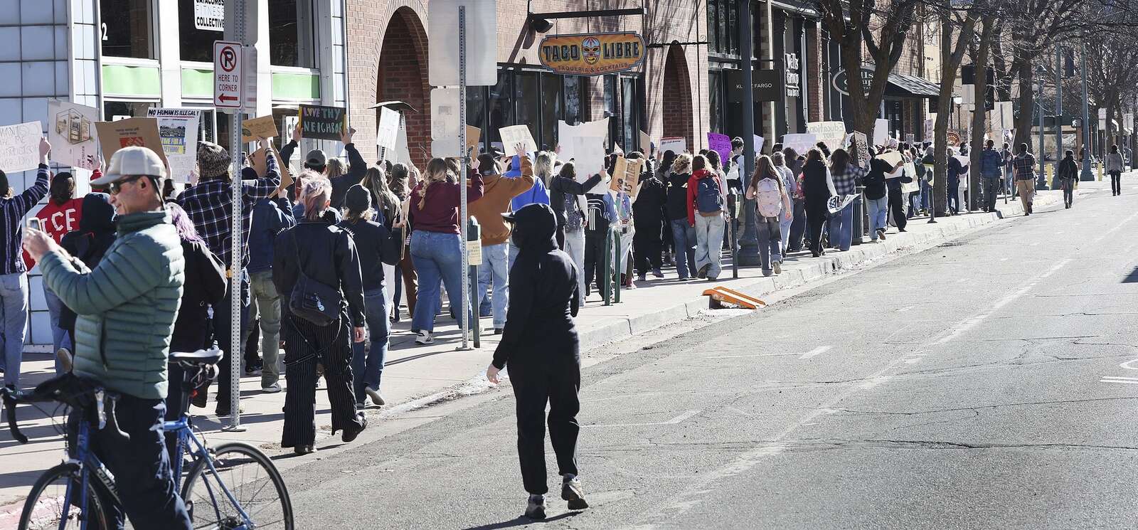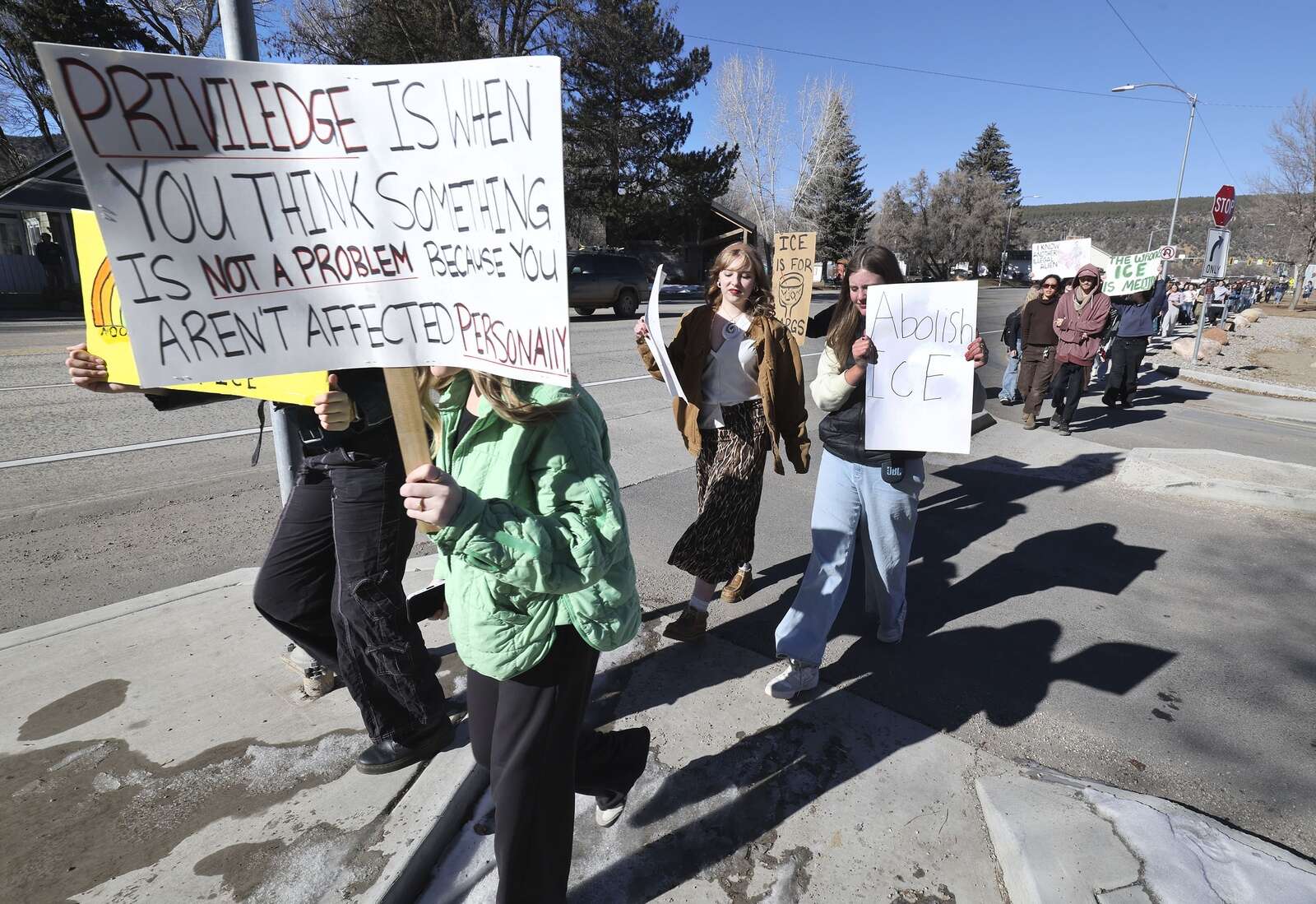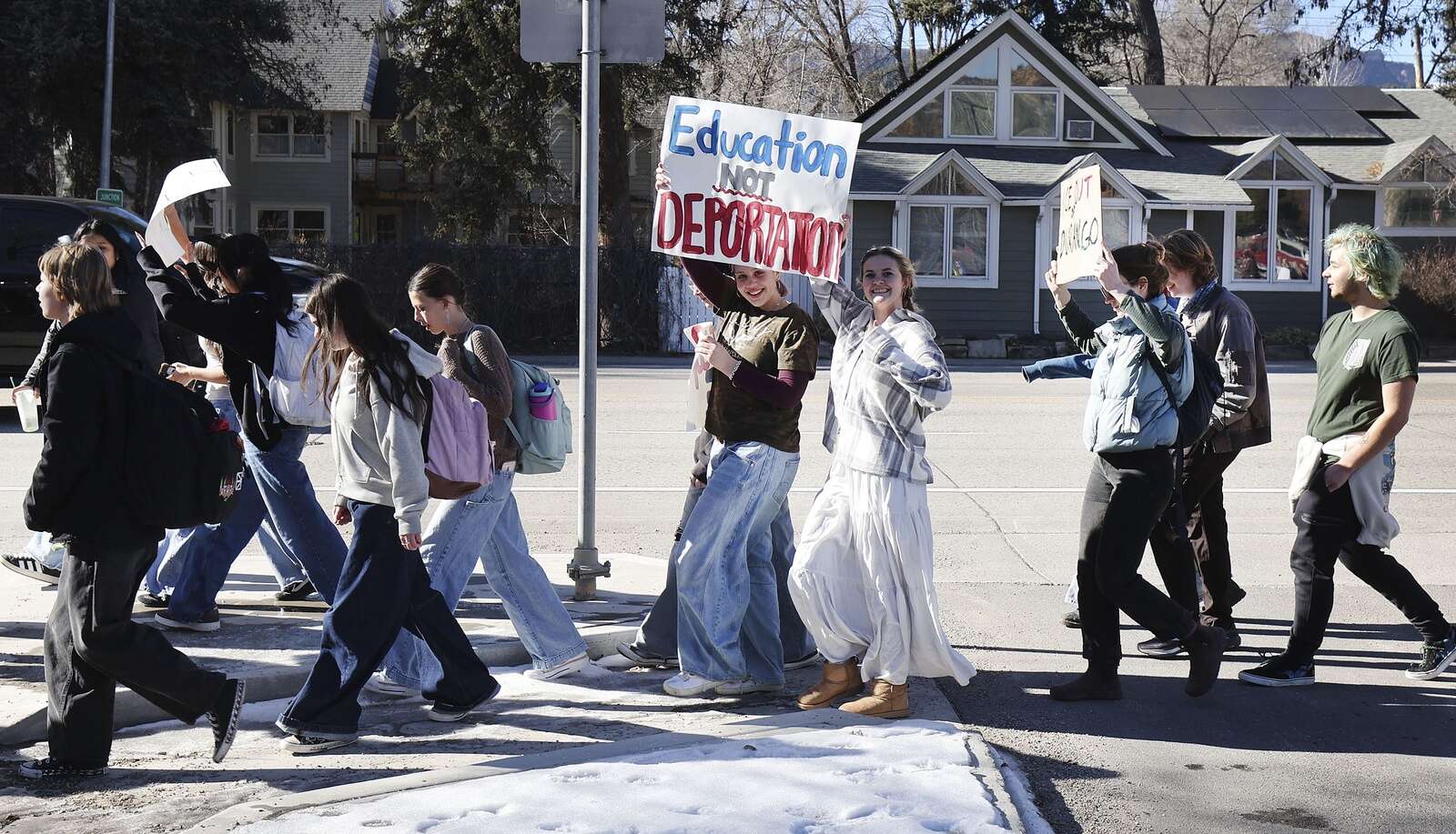 About 200 Durango High School students and a smattering of supportive community members marched down Main Avenue on Friday during school hours to protest recent U.S. Immigration and Customs Enforcement activity.