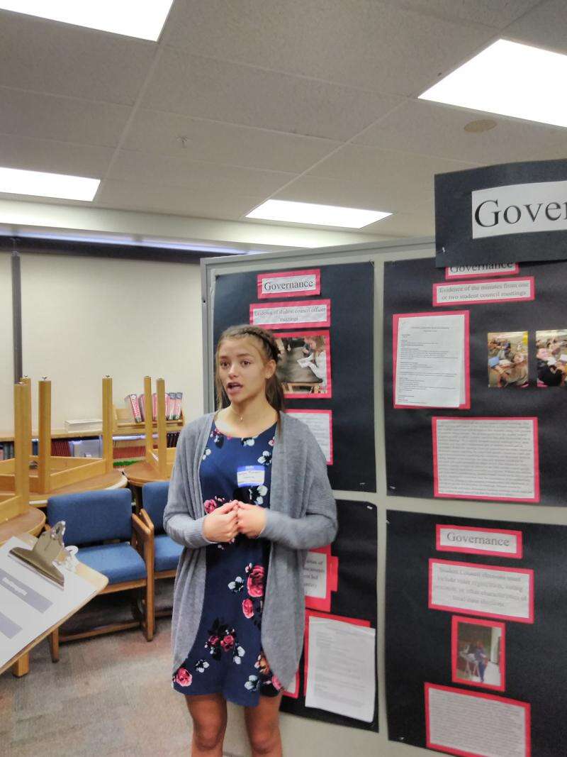 Jade Pruett, a freshman, presented evidence of budget reports and attendance at meetings.