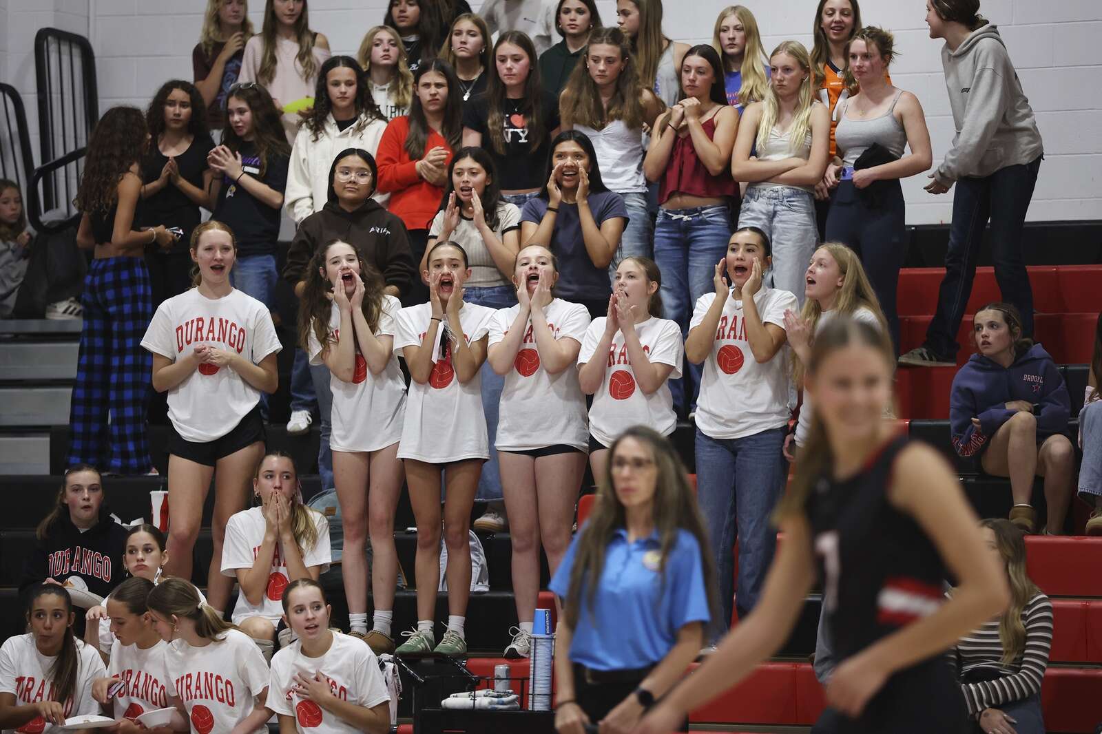 Volleyball fans cheer on Durango High School while playing Fruita Monument High School on Friday at DHS. (Jerry McBride/Durango Herald)