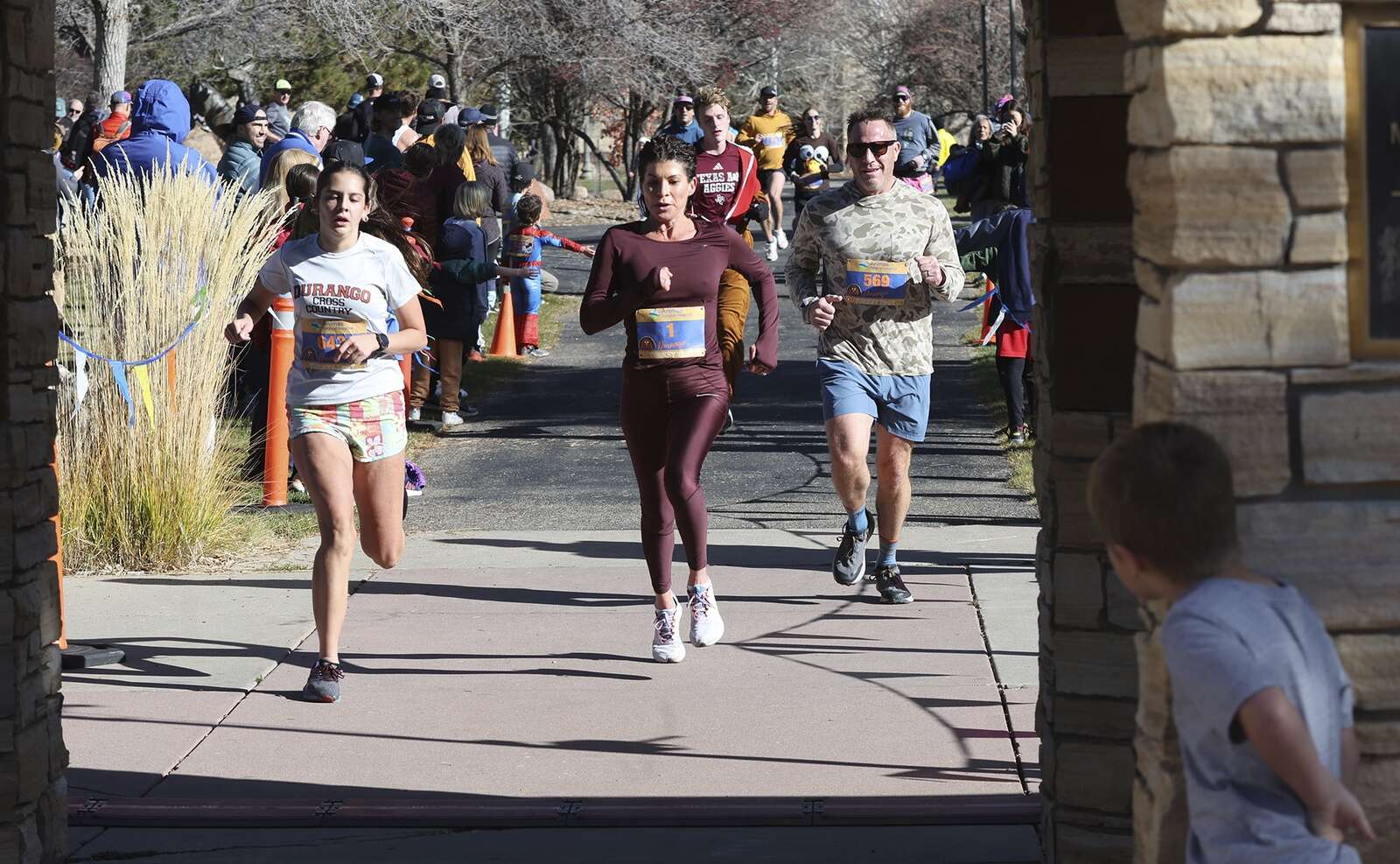 Runners finish the Durango Turkey Trot 5-mile race on Nov. 27, at Fort Lewis College. (Jerry McBride/Durango Herald file)