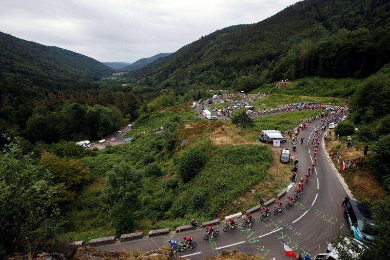 Geraint Thomas, the defending champion, also rode strongly, going some way to answer questions about his fitness after he crashed out of the Tour de Suisse in June. Thomas rode in fourth at the top of the terrible climb to the Planche des Belles Filles ski station in the woody Vosges mountains of eastern France.