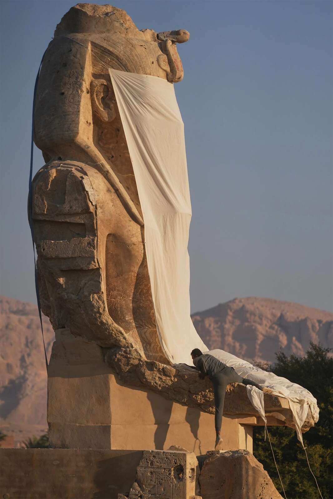 LUXOR, Egypt – Egypt on Sunday revealed the revamp of two colossal statues of a prominent pharaoh in the southern city of Luxor, the latest in the government’s archaeological events that aim at drawing more tourists to the country.