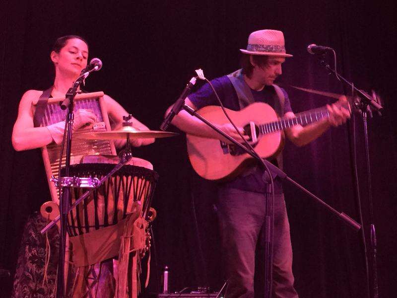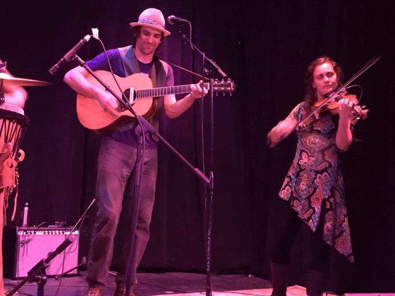 Bonnie Paine and Daniel Rodriguez, of Elephant Revival, jam out at Animas City Theatre in front of a packed crowd. The band played the first of two nights in Durango.