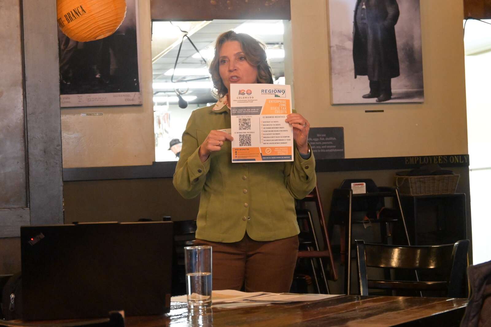 Region 9 Executive Director Laura Lewis Marchino and Program Administrator for Loan Servicing and Enterprise Zone Terry Blair-Burton discussed the program and its changes Tuesday morning at a community business meeting at El Moro Spirits and Tavern.