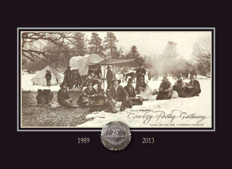 The Board of Directors of the Gathering have recreated the 1989 print in tribute to 25 years of cowboy poetry, history and culture in Durango and the West. You can purchase a limited edition anniversary print, numbered and signed by the photographer, in the Sales Room during the Gathering or online at www. durangocowboypoetrygathering.org.