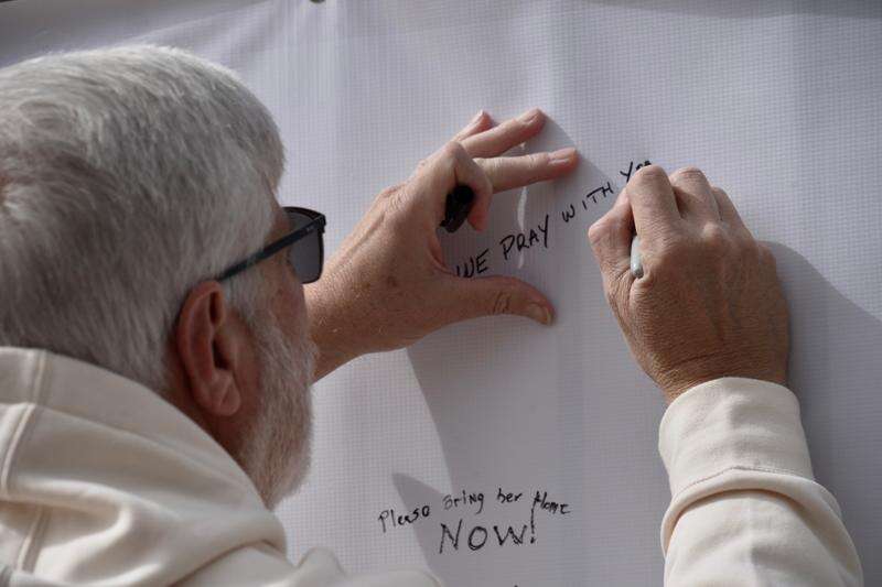 Meanwhile, many people stopped Friday at KVOA-TV in Tucson, an NBC affiliate, to sign a large outdoor banner with a photo of Nancy Guthrie and the message “Bring her home.”