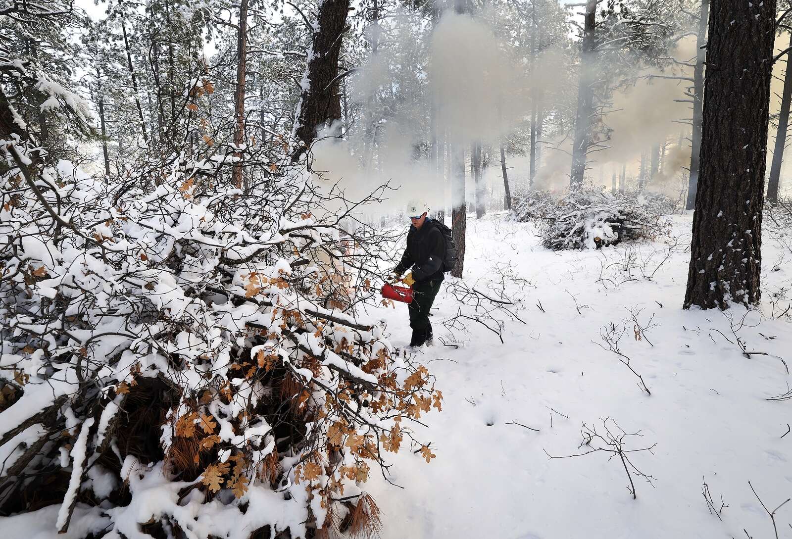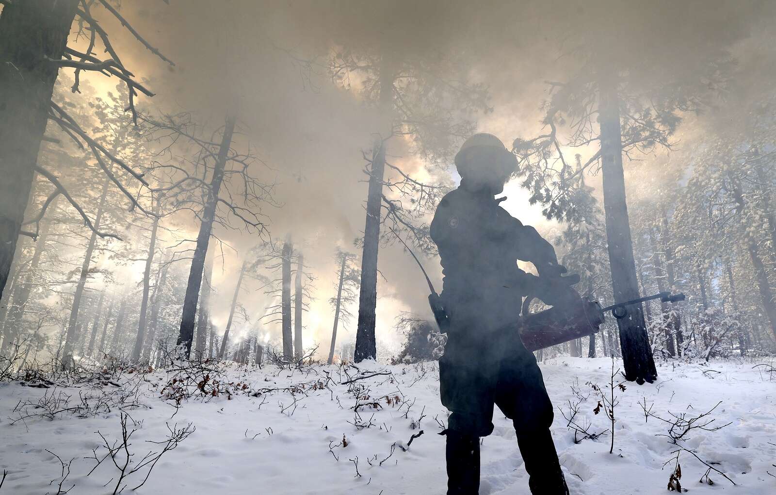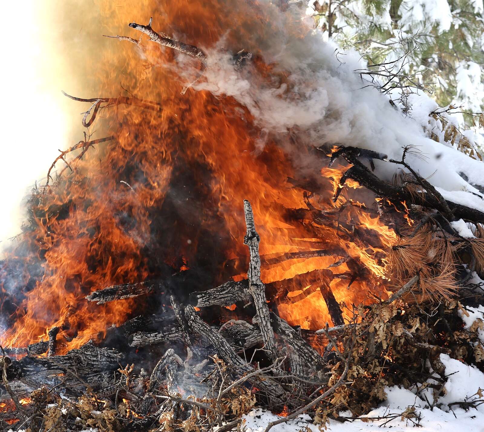 Nielsen and his fellow firefighters walked among the burning piles, emerging and disappearing from thick columns as smoke. Each new fire was a beacon, signaling forest mitigation work that would make the community a little safer.