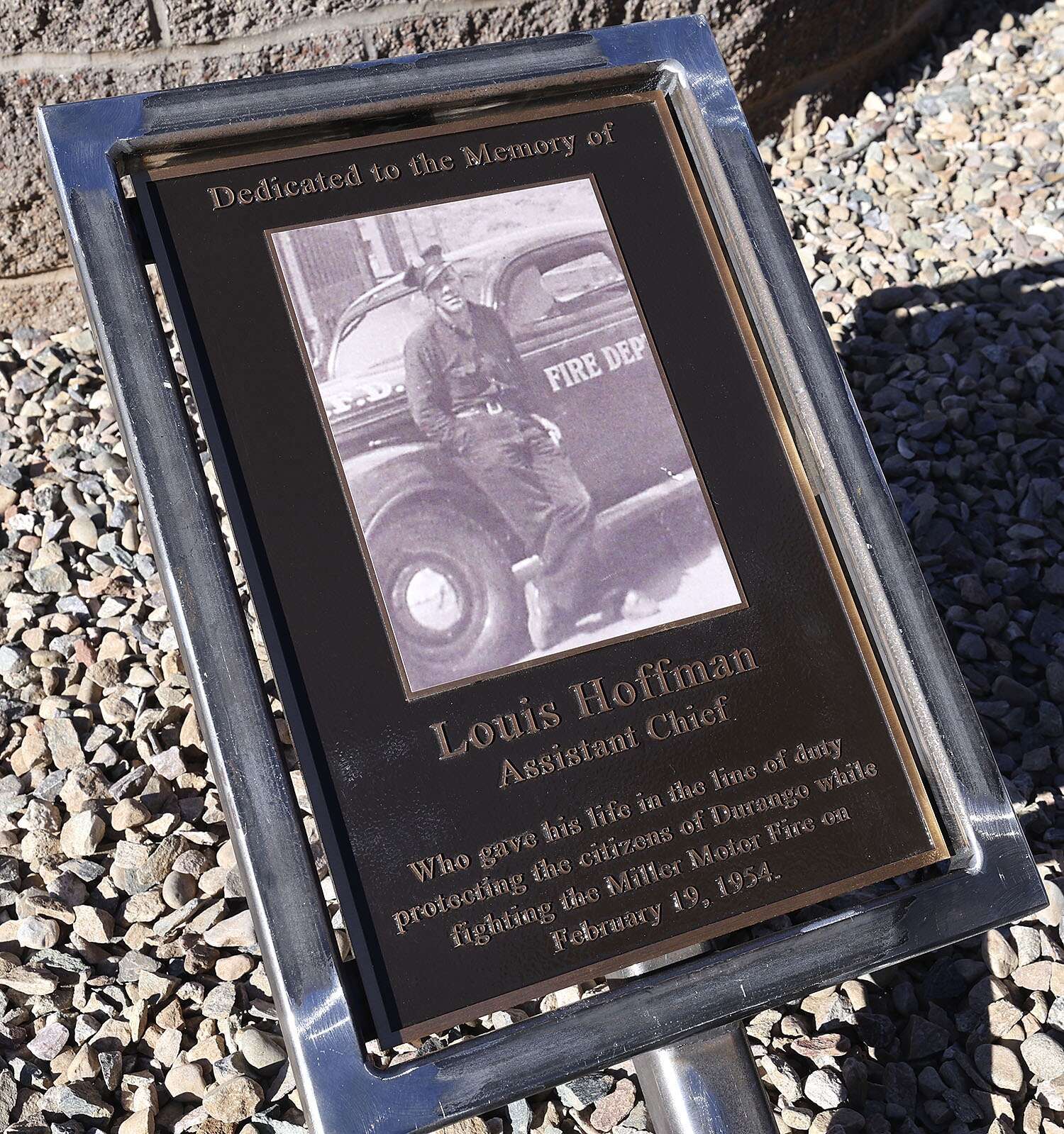 Fire Chief Randy Black commemorated a memorial acknowledging Elzie Briggs and Louis Hoffman, who died fighting the 1954 Miller Motor Fire, and Nick Parks III, who died fighting the Main Avenue Fire of 1974.